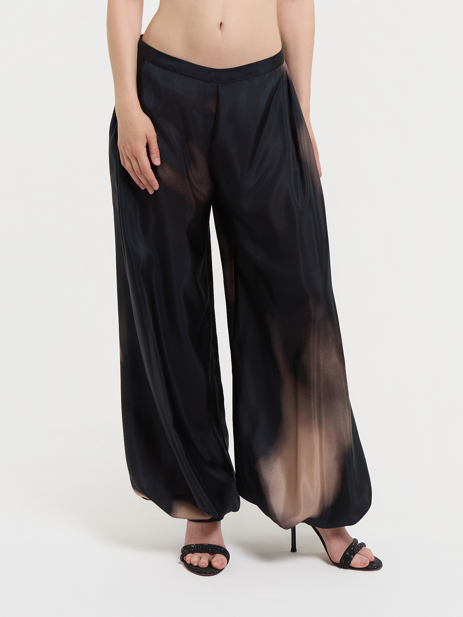 • 100% dead-stock deep blue sheer silk with a subtle print