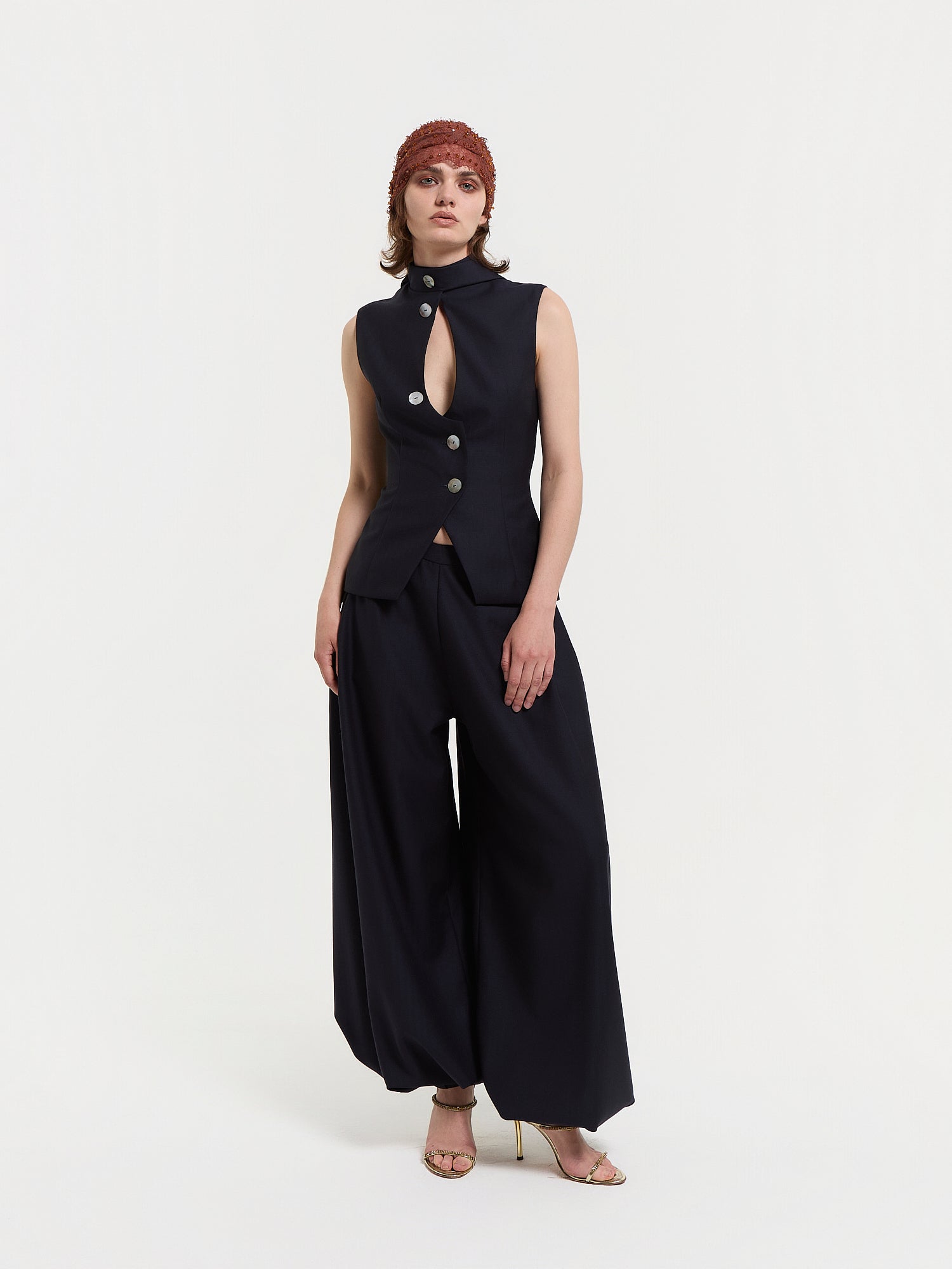 Classy Balloon trousers in marine blue wool with an elegant fit - can be paired with the Visitors Waistcoat.
